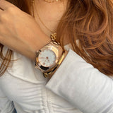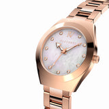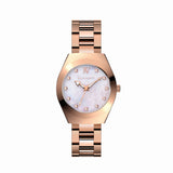 A mother of pearl white dial compliments beautifully to the shiny watch case. The sapphire glass is a beautiful touch that we’ve incorporated to protect the crystal from any scratches. Crafted to perfection, the band is made from 316 Stainless steel for the sophisticated Women out there.
