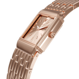 The 'bracelet watch', also known as the conversation starter. This vintage timepiece will gracefully elevate your wrist game like no other. A beautiful rose gold sunburst dial is housed inside a durable 316L stainless steel case. A statement piece that will never go out of style