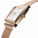 A shimmering mother of pearl dial, housed inside our bold Signature stainless steel case with an interchangeable strap. The 23x35mm case, is the smallest watch we’ve made so far. A timepiece that would suit anyone regardless the size of your wrist. This watch embodies the classic era of ultra minimalism, combined with modern elegance. A watch that is designed for the chic.